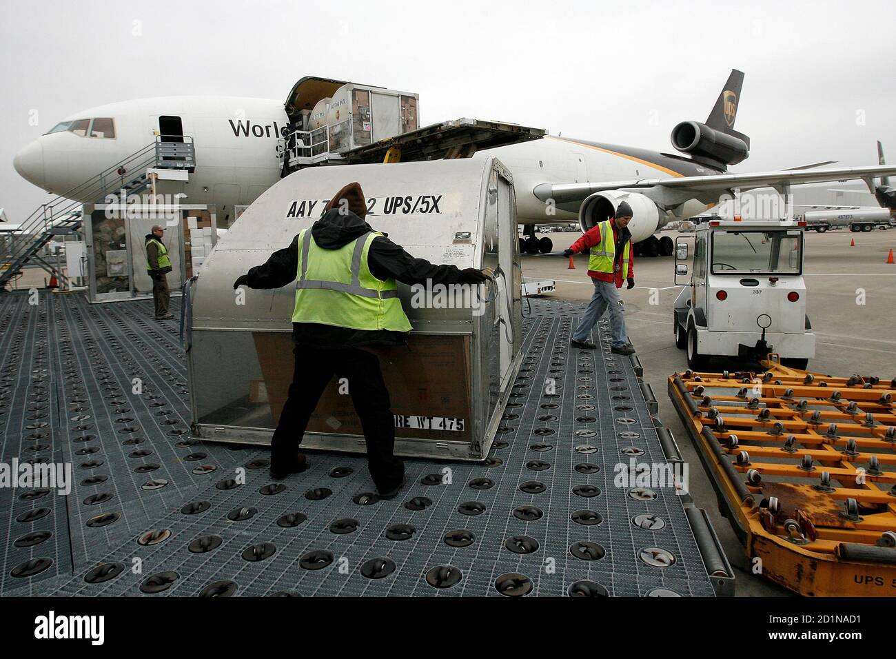 United Parcel Service Employees Load Containers Full Of Packages Aboard Aircraft Bound For Their Final Destination At The Ups Worldport All Points International Hub During The Peak Delivery Day In Louisville Kentucky